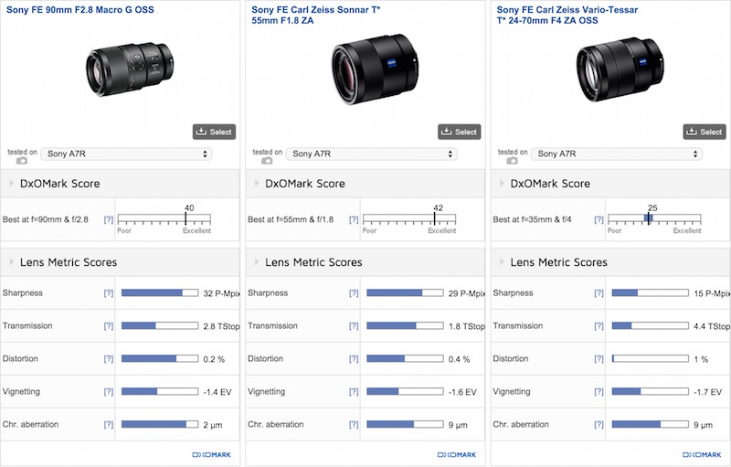 所有している3本のFEレンズのDxOMarkスコア