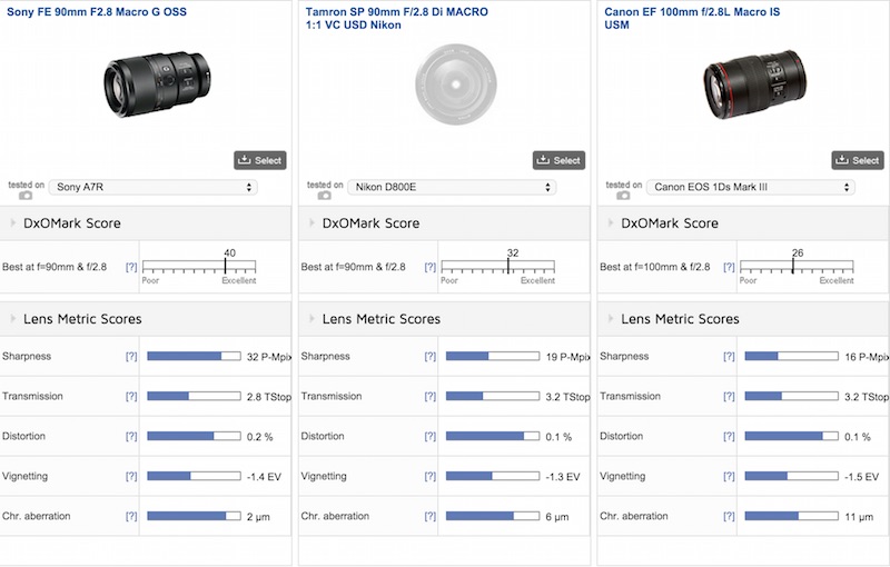 レンズ「Sony FE 90mm F2.8 Macro G OSS」のDxOMarkベンチマークの結果です。