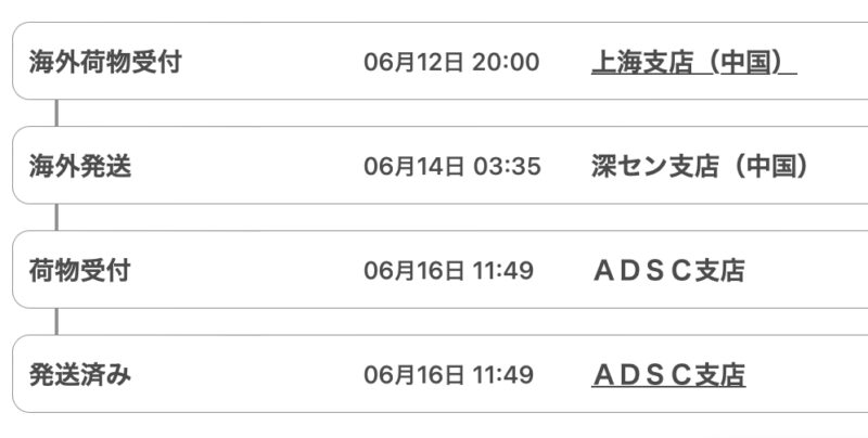 私のMac Studioですが、この記事を書いている2023年6月16日現在だと、午前中に日本到着したみたいです。