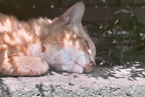 ニャンコは物陰で寝て過ごす季節になってしまいましたねぇ・・・ 昨日出会ったのは風通しの良い日陰で爆睡していたコイツだけです。 殺人的な暑さになって来ましたね。 ニャンコの生き方が正しいのかも知れない・・・(^_^;)
